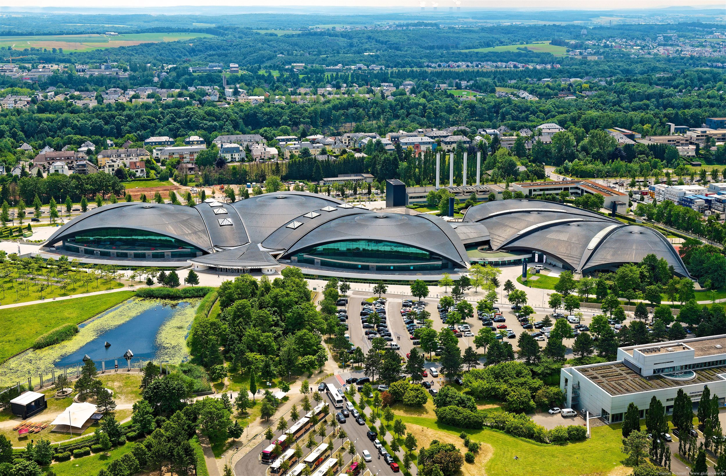 Der Architekt Roger Taillibert (geboren 1926) hat hier sportliche Leistung mithilfe architektonischer Techniken und Ausdrucksformen versinnbildlicht. Als Erweiterung des Olympischen Schwimmbads wurde 2002 das Nationale Sport- und Kulturzentrum ("d'Coque") vom selben Architekten fertiggestellt.