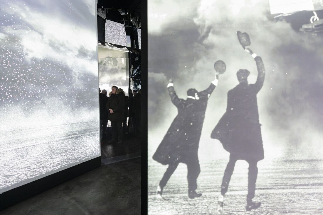 Das immersive Erlebnis, das in einem umgebauten Container angeboten wird, macht Platz für starke Emotionen dank der Klang- und Bildwelt, die für diese außergewöhnliche historische Retrospektive geschaffen wurde.