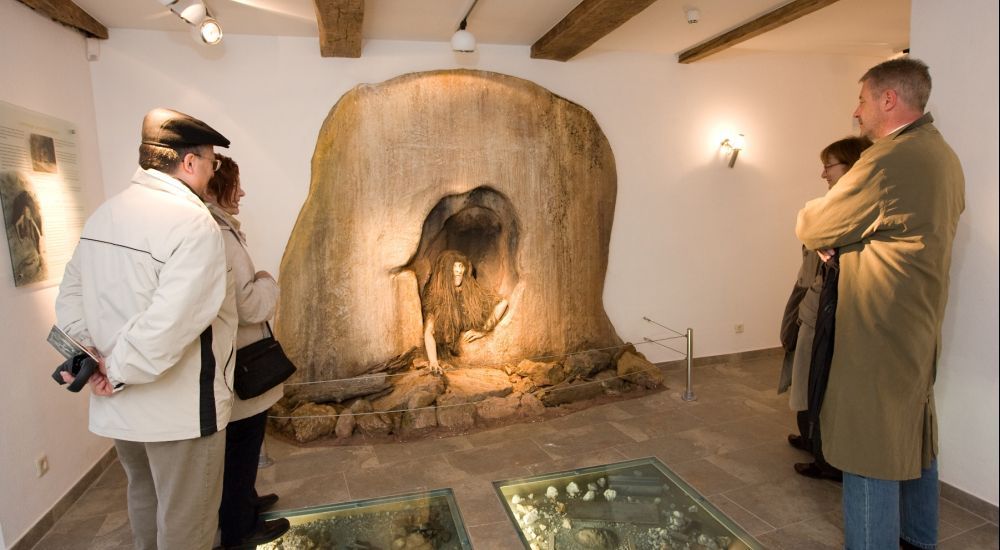 Diese lebensgroße Rekonstruktion versetzt Sie in die Zeit des Zweiten Weltkriegs zurück, als sich eine Gruppe junger Luxemburger in einem Bergwerk (genannt Hondsbësch) versteckte, um der Wehrpflicht zu entgehen.