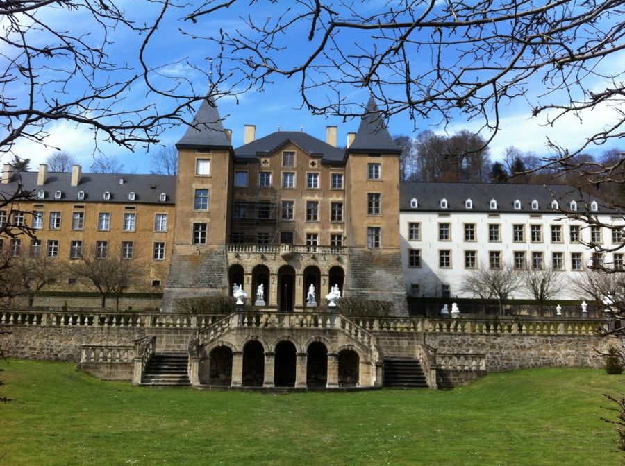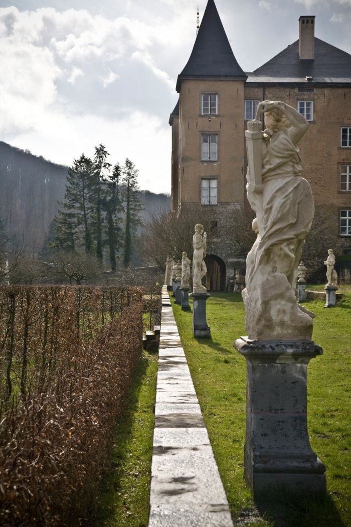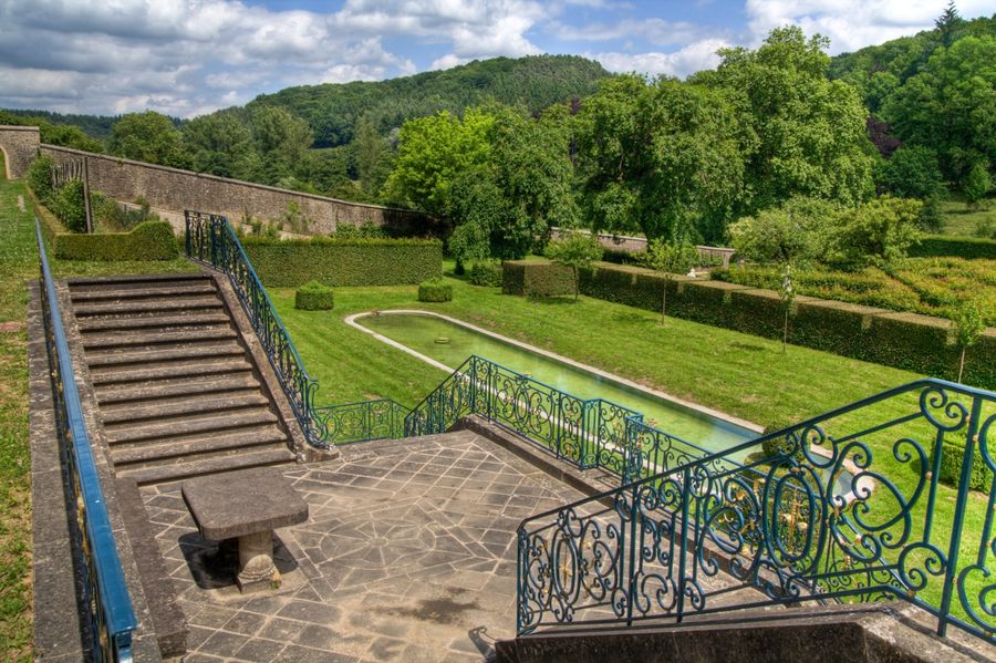 Das Schloss Ansembourg wurde in der ersten Hälfte des 17. Jahrhunderts von Thomas Bidart errichtet, einem Pionier der Eisenindustrie. Im 18. Jahrhundert erlebte das Schloss einen signifikanten Wandel, als die Erben von Bidart zuerst 1728 in den Rang von Baronen und später in den Rang von Grafen erhoben wurden. Im Jahr 1750 wurden die Gärten angelegt. Zu ihnen gehören Statuen, Treppen und dekorative Springbrunnen im Stil der Gärten jener Epoche.