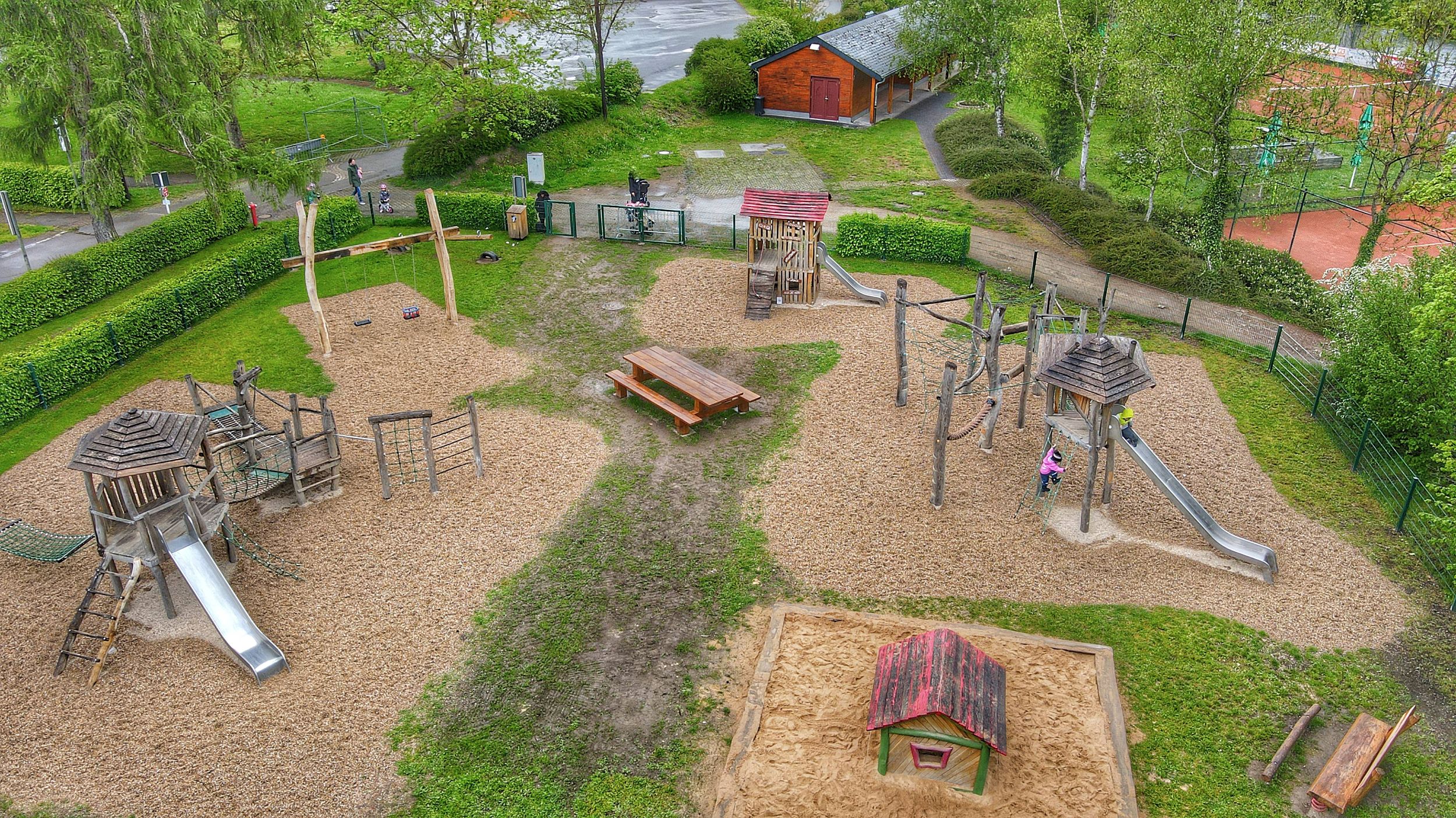 Aire de jeux située dans le parc municipal d'Echternach. Elle est équipée d'une balançoire, d'un toboggan, d'une balançoire à bascule, d'un bac à sable, d'une maison de jeu, d'un appareil de gymnastique et d'un échafaudage à grimper.