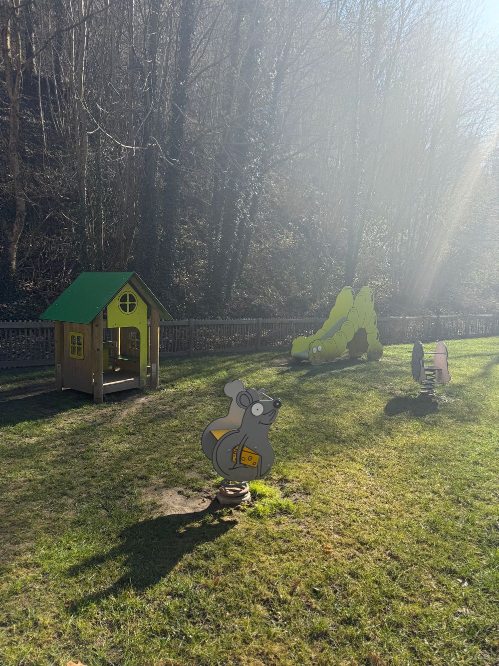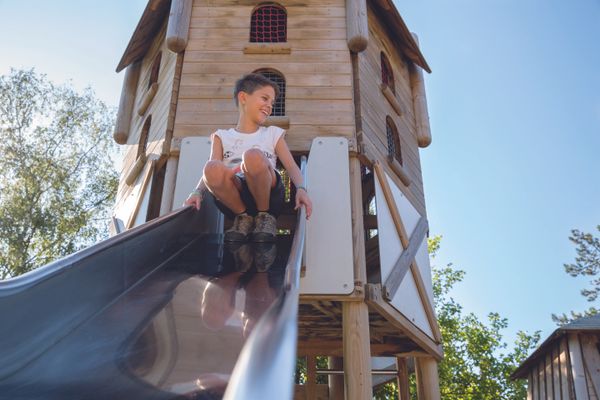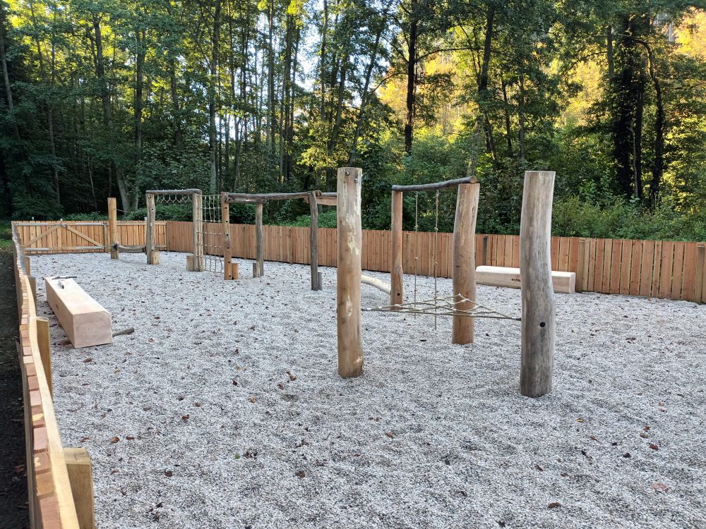 Grand terrain de jeux Martbusch. Aire de jeux ombragée en forêt pour petits et grands explorateurs.