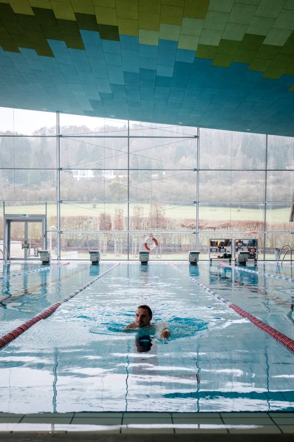 Centre de loisirs aquatiques d’une architecture contemporaine. Bassin de natation, bassin d’apprentissage, pataugeoire, bassin à vagues, bassin extérieur, bassin à bulles avec jets de massage, toboggan géant de 80 m, toboggan rapide de 30 m, divers saunas et hammams à l’extérieur et à l’intérieur, cours, douches aventure, solarium, bars et restaurants, fitness, institut de beauté.