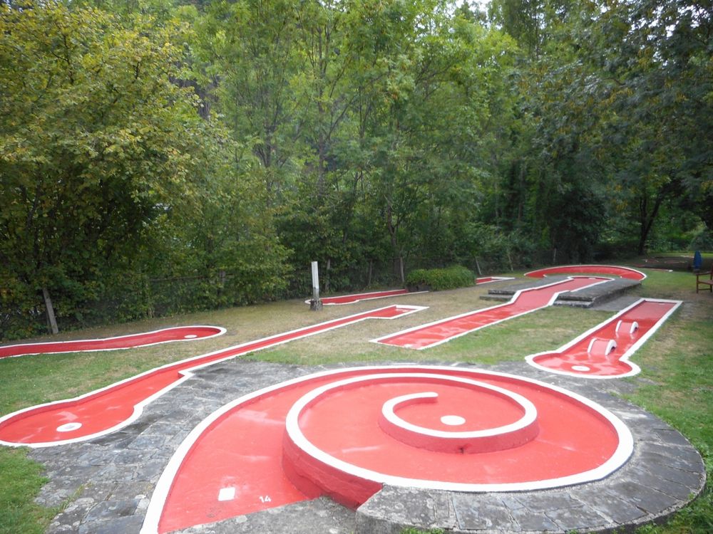Mini-golf de 18 pistes variées à Vianden, idéal pour une sortie en famille dans un cadre paisible au bord de l’Our.