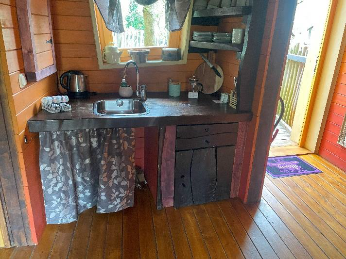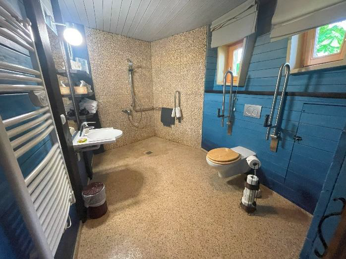 - Une cabane perchée, aménagée pour être accessible à tous, est proposée pour l’hébergement.