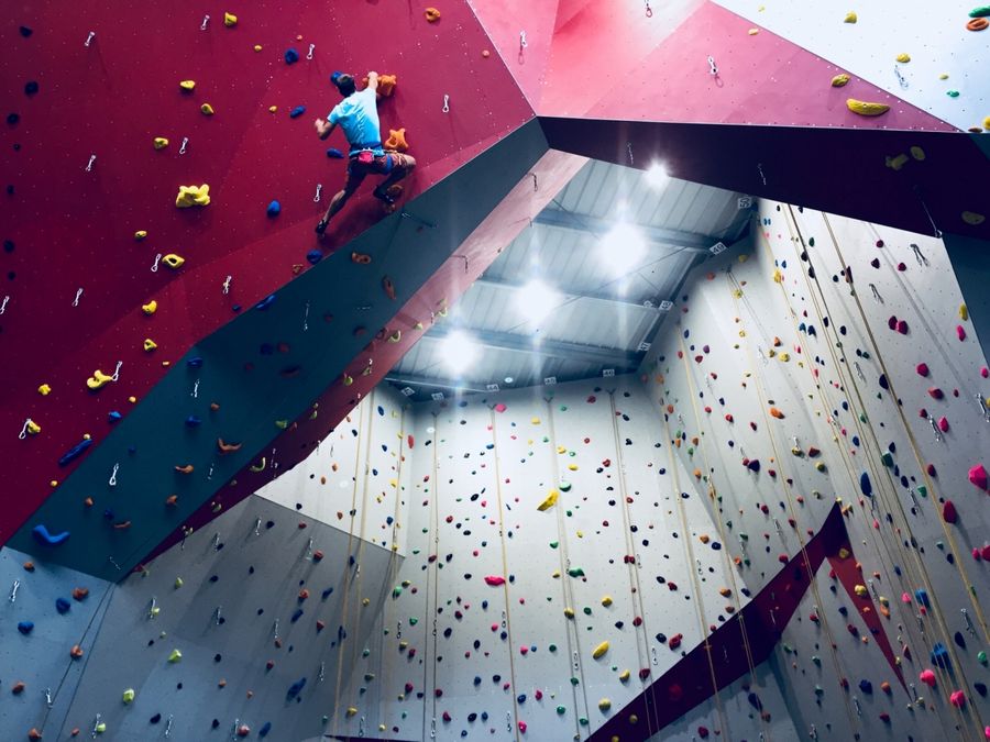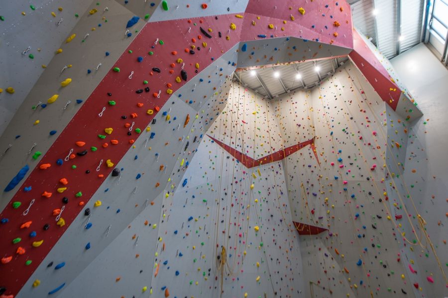 La plus grande et moderne salle d’escalade du Luxembourg, construit selon les normes olympiques. Le lieu comprend un hall principal de 15,5 m de hauteur avec 4 auto-assureurs, une salle de formation pour débutants et enfants et une salle de bloc d’une hauteur de 4,5 m, soit une surface d’escalade de 1.400 m². Le matériel d’escalade peut être loué sur place ou acheté dans notre magasin spécialisé. À la cafétéria, vous pouvez prendre un verre, savourer un plat en famille ou entre amis, le tout dans une ambiance chaleureuse. Le hall d’escalade se trouve à 3mn de l’arrêt de train/bus Belvaux-Soleuvre et à 2mn d’un parking de 150 places.