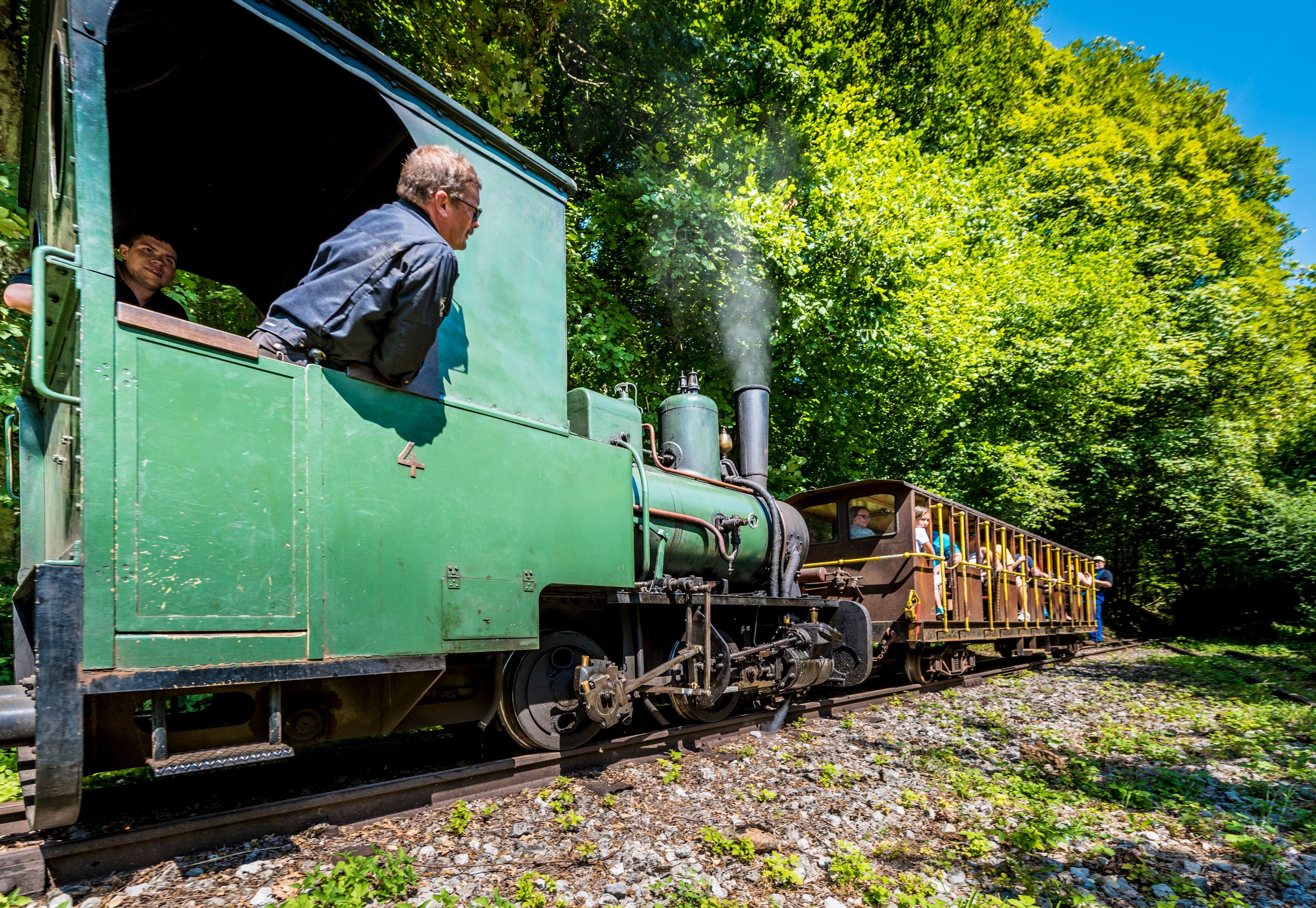 Le train minier "Minièresbunn" vous emmène dans un voyage captivant entre Fond-de-Gras et Lasauvage. Plongez dans l'histoire de l'exploitation du minerai de fer alors que l'impressionnant train à voie étroite "Minièresbunn" vous transporte à travers le paysage pittoresque.