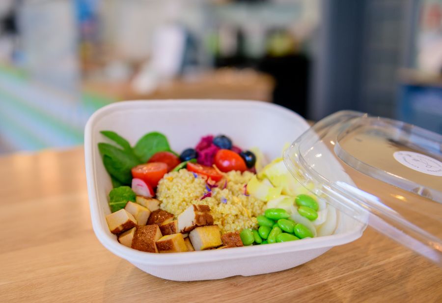 The menu includes breakfast and brunch classics as well as vegan dishes and plant-based milk alternatives.