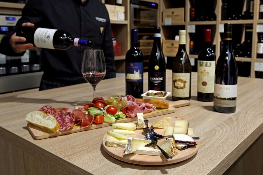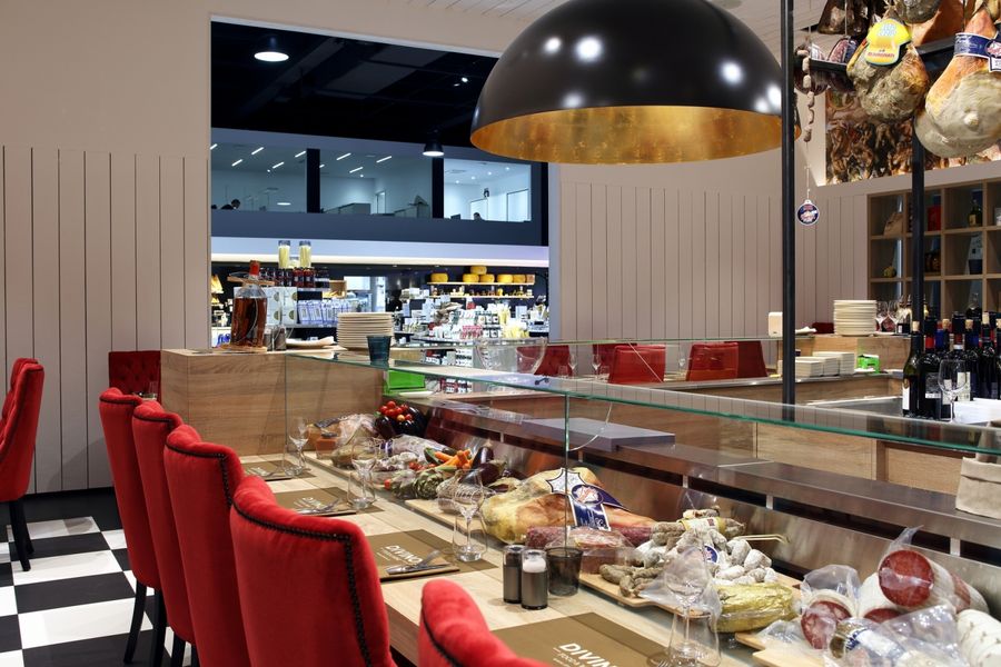 Located within the wine store VINISSIMO, "DIVINO" offers a new restoration concept: italian traditional meals, antipasti, various pasta plates but also boards of Italian high quality deli meats and cheeses. It is the Italian way of life.