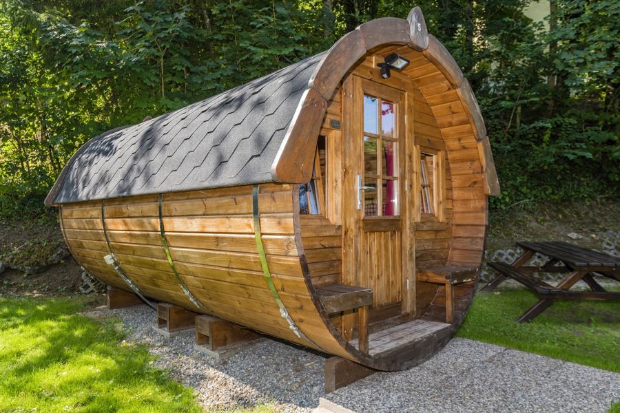 De camping is aangelegd op verschillende terrassen. Er zijn Finse kota's, slaaptonnen en chalets te huur.