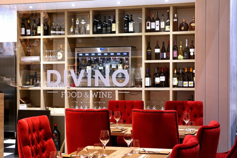 Gesitueerd in het midden van de wijnhandel VINISSIMO, stelt « DIVINO » een nieuw restaurant concept voor waarbij zowel de traditionele Italiaanse gerechten, antipasti, pastaschotels maar ook Italiaanse kaas- en charcuterieschotels van het hoogste kwaliteitsniveau geserveerd worden. Dit is de kunst van het leven op z’n Italiaans.