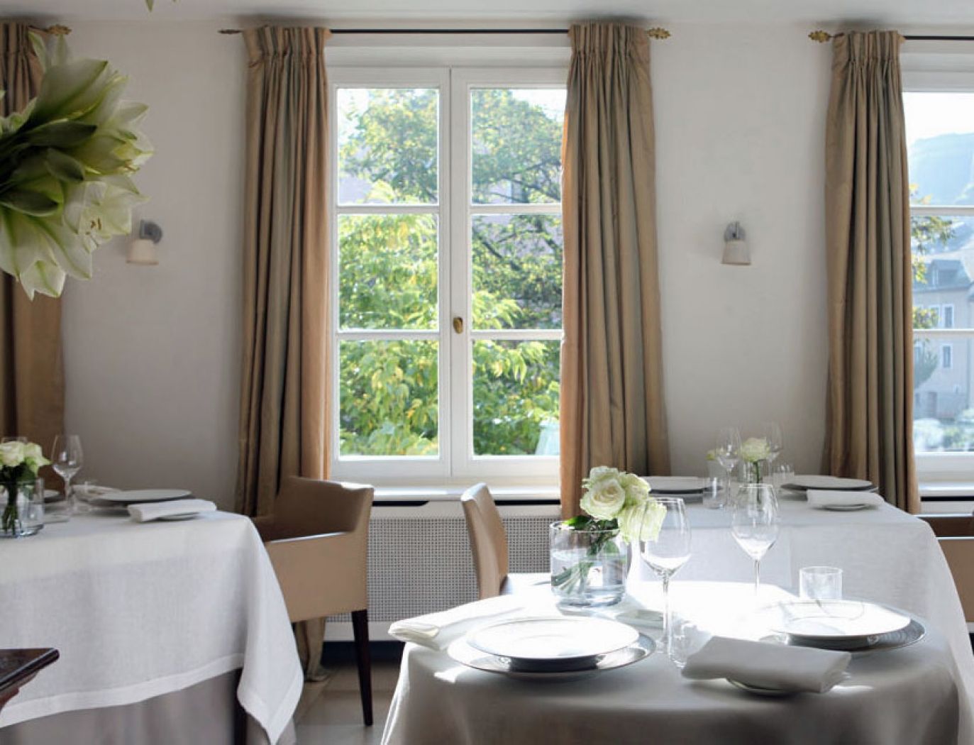Het "Restaurant Mosconi" nodigt zijn gasten uit om in de zomer plaats te nemen aan de oevers van de Alzette, aan de rand van een groen en schaduwrijk terras, en biedt een frisse kaart met luchtige menu's en een keuken vol mediterrane smaken, gebaseerd op de waarde van het eerste product, verwerkt met delicatesse en precisie om een subtiele authentieke verfijning te verkrijgen: "Ik besteed niet veel aandacht aan de decoratie van het bord, mijn composities blijven eenvoudig en combineren drie of vier producten. "In het "Restaurant Mosconi" worden de gasten verwelkomd in kleine kamers die een verfijnde sfeer bieden, in de schaduw van prachtige kroonluchters die de tafels met eenvoudige en authentieke decoraties verlichten, in de hoeken van klassiek houtwerk dat de muren verwarmt. Witte rozen en crèmekleuren omlijsten royale fluwelen vierkanten die een zachte omgeving vormen voor gastronomische ontdekkingen.