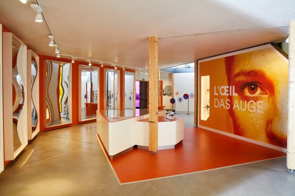 Our more than 35 interactive experiment stations in our large exploration space, called the room of the 5 senses, enable visitors to become familiar with human senses and natural sciences.