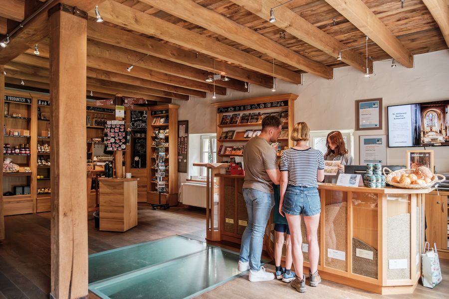 In this restored 17th century mill, there is a tourist information. Furthermore, you can visit a small mill museum and see that the old mill wheel is still turning and an ancient stone oven where traditional mill bread is baked inhouse.