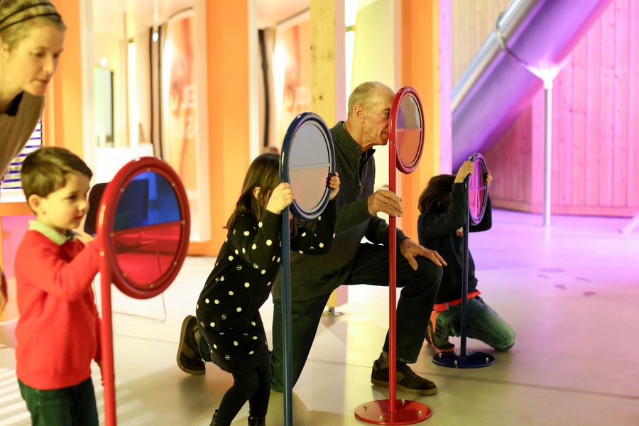 Seeing, hearing, touching, smelling and tasting: the Park Sënnesräich leisure centre offers its visitors a wide range of activities based on the five senses. Close your eyes as you walk along the Barefoot Path and try to work out what kind of surface you are walking on. In the “Five Senses Room”, children are shown how our senses work, in a fun but realistic way. Visitors of all ages will also enjoy the outdoor area with its large garden, huge AirTramp air-filled cushion, playground and maze. While the children romp around in the garden, their parents or carers can relax on the terrace of the Bistro Sënnesräich, from where they have a clear view of the outdoor area.