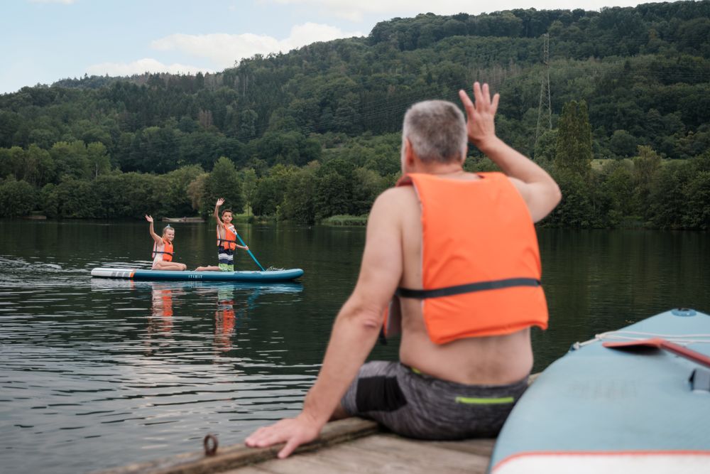 You can explore the lake of Echternach – a 30 hectare man-made lake – on a stand-up paddle board. The boards can be hired on the eastern side of the lake, on the island where the bistro "Pier'75" is located.